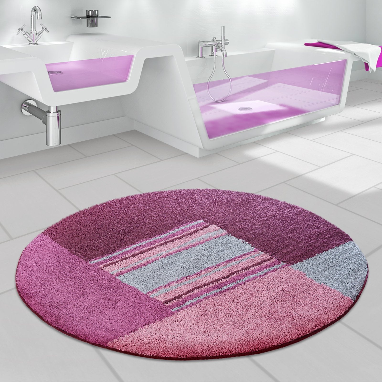 Så smuk som bademåtten er, så er Quadral-modellen også alsidig. Vælg mellem runde og rektangulære former og i alt fem størrelser for at finde præcis den bademåtte, der passer til dit badeværelse. Eller sammensæt et bademåttesæt af bademåtter i forskellige størrelser.