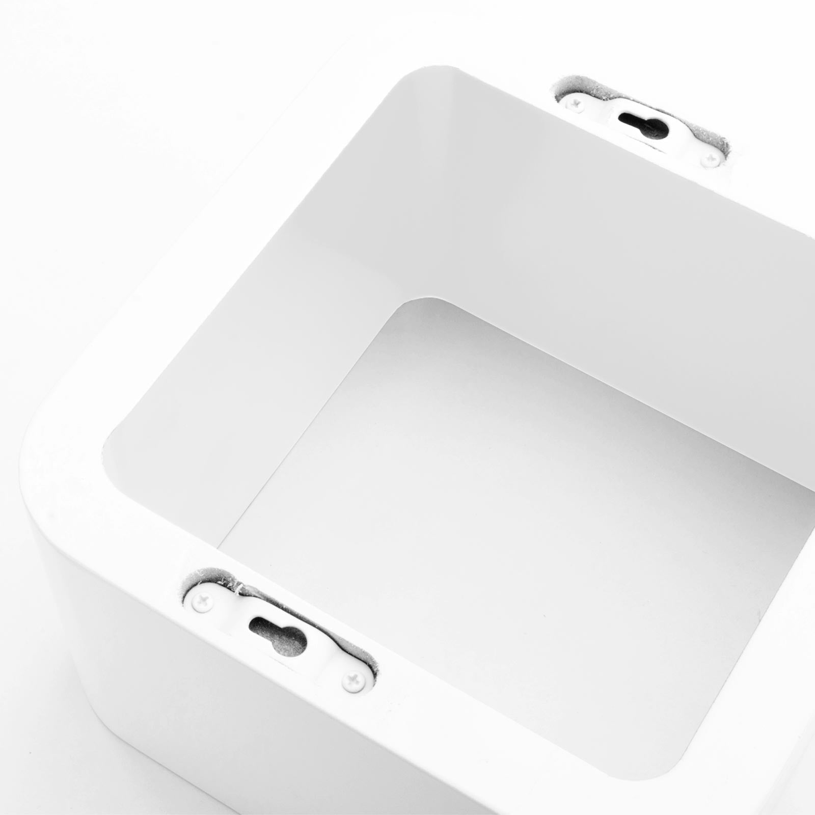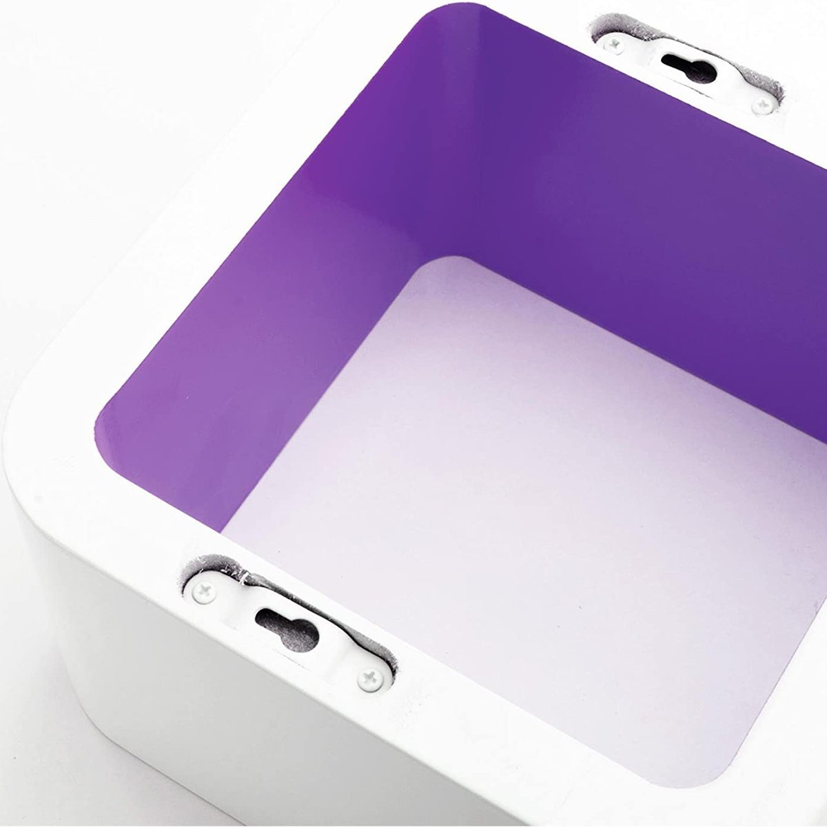 Udstyret med et usynligt ophæng på bagsiden giver kubehylderne et frit svævende indtryk. Den højglanslakerede overflade giver retrohylderne et meget ædelt udseende. Sættet på 3 fås i fire farver: klassisk hvid eller sort og i tofarvede versioner hvid-orange eller hvid-lilla.