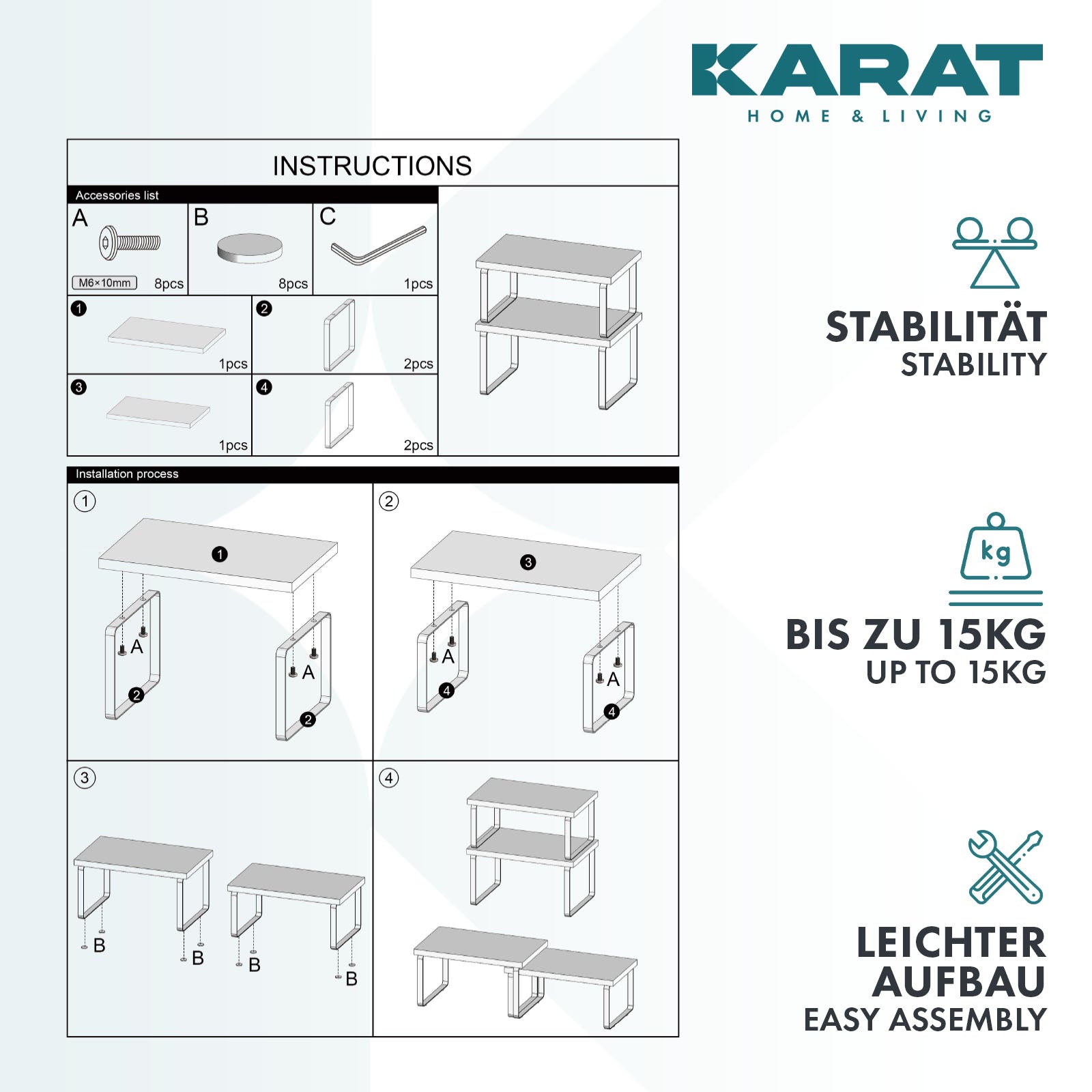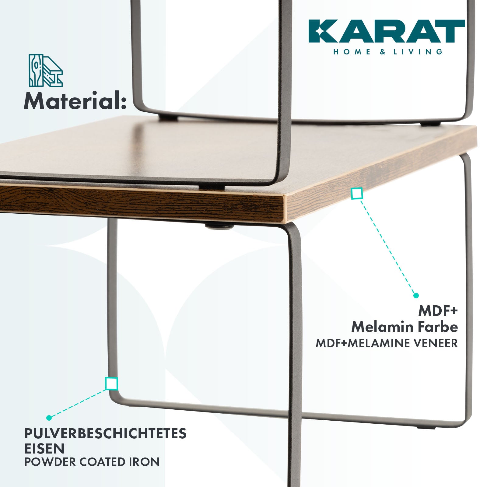 Beslut selv, om du vil stable produktet eller udnytte højden bedst muligt, eller om du vil placere begge dele side om side og dermed sprede din opbevaring ud over hele bredden. I kombination med en glat træstruktur sikrer de pulverlakerede stålfødder, at de opbevarede genstande altid forbliver på plads.