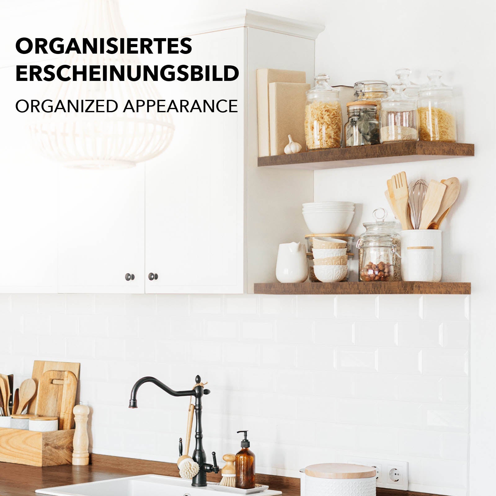 Væghylden er lavet af robust MDF. Afhængigt af den valgte længde kan væghylderne bære en belastning på op til 15 kg. Ud over den højglanslakerede version fås hylden også i en mat finish.