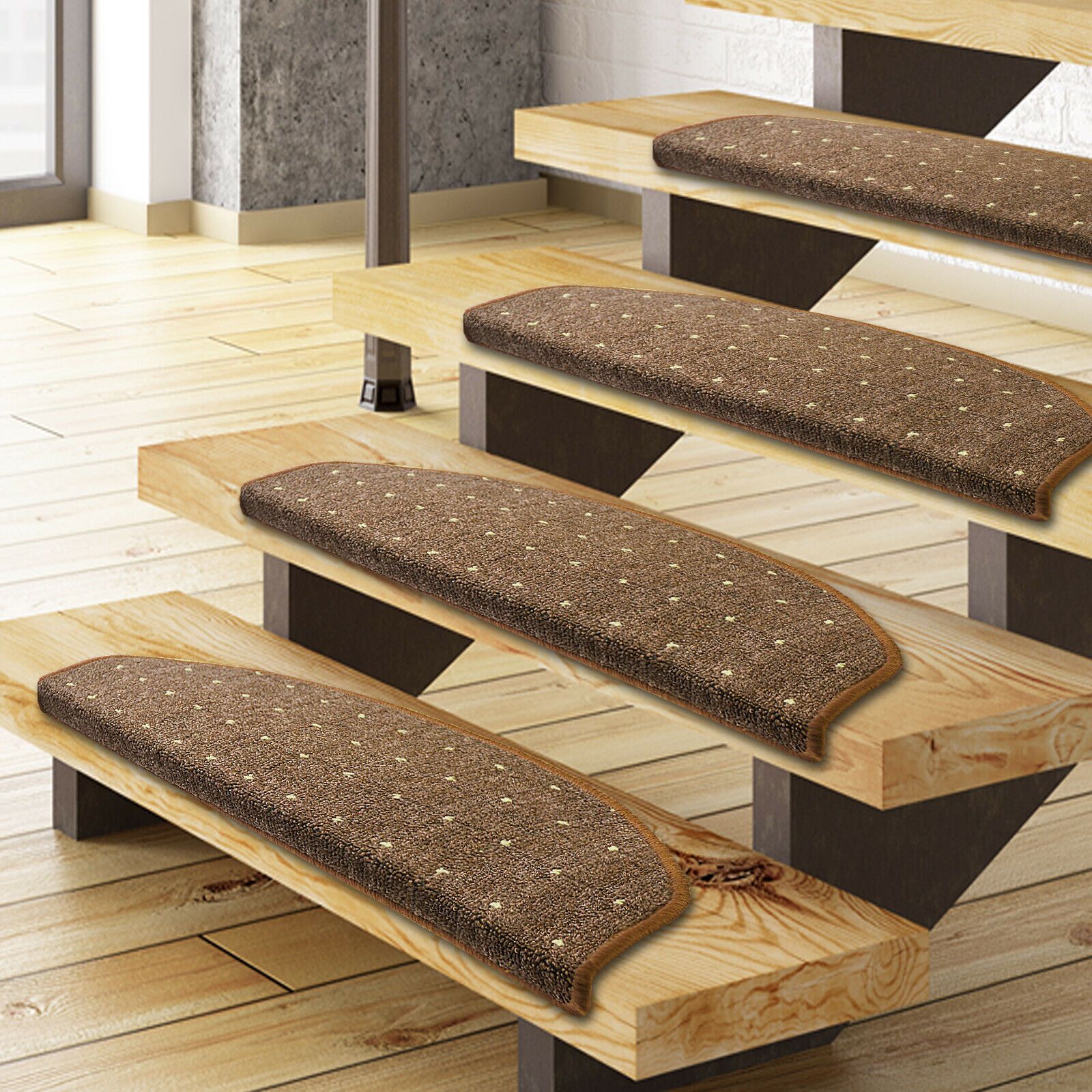 Trappemåtterne, der fås i mange farver, er udstyret med en stabil vinkel på undersiden. Sammen med den ekstra brede klæbestrimmel sikrer det et fremragende greb på trinene. Trappetæpperne fås i to versioner. Mens den rektangulære version er særligt velegnet til store trappetrin, er den halvcirkelformede version ideel til standard- og vindeltrapper.