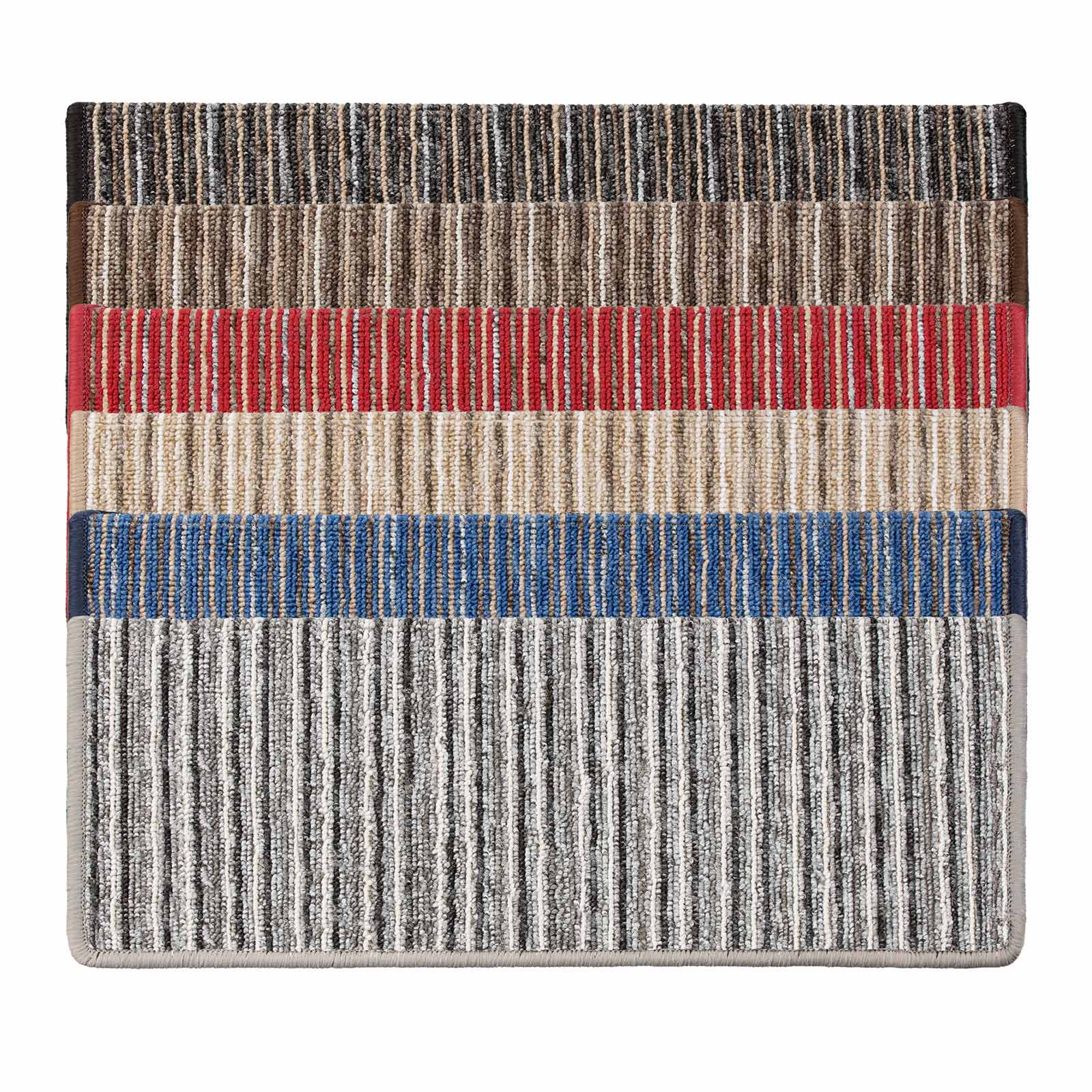 De mønstrede "Trier"-trappemåtter er en solid og visuelt attraktiv trappebeskyttelse med et fremragende forhold mellem pris og ydelse. Takket være vinkelskinnen og klæbestrimlen kan trappemåtten hurtigt og nemt fastgøres på stort set alle indendørs trapper. Trappemåtten er fremstillet af robust polypropylen og kan nemt modstå hverdagens slitage. Den stribede struktur blødgør trappens udseende og skaber en behagelig atmosfære.Trappemåtten "Trier" fås i seks attraktive farver. Det betyder, at der er en passende variant til ethvert boligmiljø og enhver smag. Trappetæppernes kanter er tapede, hvilket ikke kun giver kanterne et look af høj kvalitet, men også beskytter trappemåtterne mod skader forårsaget af konstant brug.
