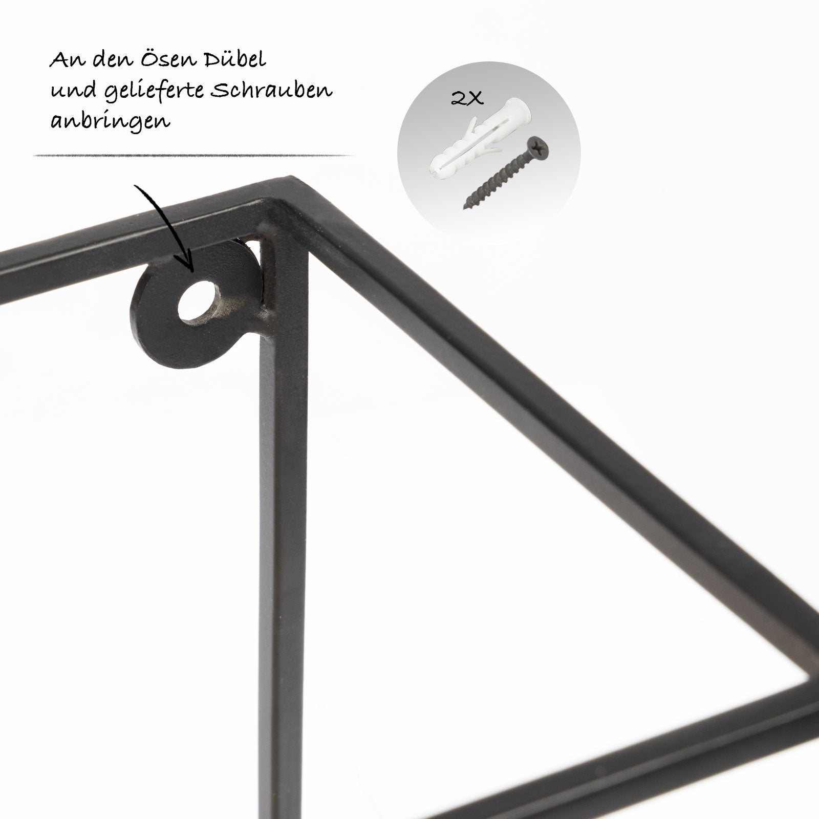 Væghylden "Trofast" i et moderne industrielt look består ud over metalrammen af usædvanligt let Paulownia-træ og er derfor ideel til montering på væggen. De medfølgende hyldeindsatser kan omarrangeres, så intet står i vejen for et individuelt design. Forskellige pyntegenstande, såsom figurer eller blomster, kan placeres optimalt på denne hylde og kommer til deres ret. Derudover sikrer det medfølgende montagemateriale en hurtig og nem montering.